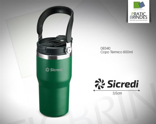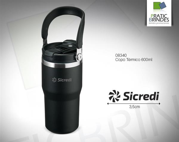 Copo térmico em inox com pintura eletrostática e capacidade máxima de 600ml. Conta com estrutura de parede dupla e vedação a vácuo que permite a conservação da temperatura de líquidos por mais tempo. Possui tampa plástica rosqueável com protetor para o bocal, bico flip, canudo interno removível e alça fixa para transporte.