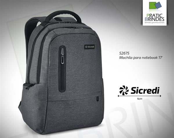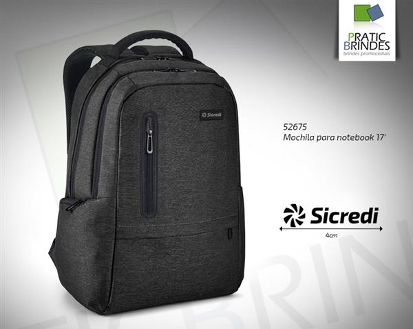 Mochila para notebook em Nylon 2Tone impermeável com dois compartimentos no interior forrados e almofadados, compartimento posterior tem bolso interior com zíper e divisória almofadada para notebook até 17", compartimento frontal tem diversos bolsos interiores, dois bolsos frontais e dois bolsos laterais, parte posterior e alças almofadadas com tira de transporte para malas trolley. Placa metálica para personalização a laser (placa removível com imã) capacidade até 26 litros, tamanho aproximado 31 x 47 x 20 cm.